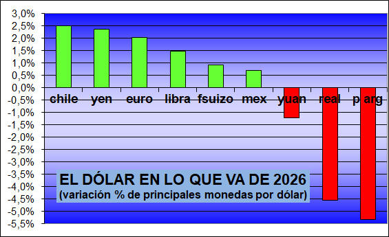 Chile, Japón y contra el euro y la libra. Baja apenas en México y
