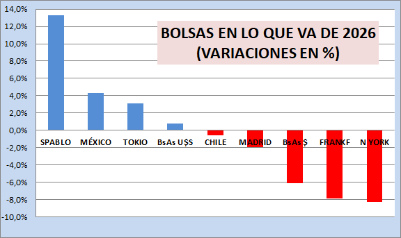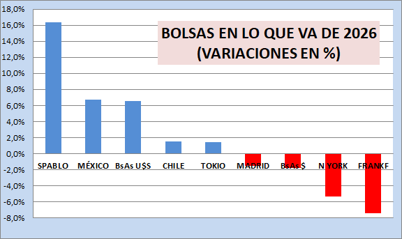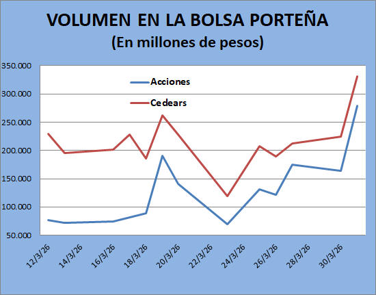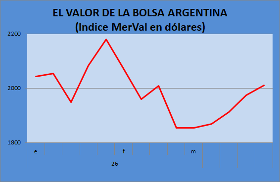 las acciones, pero con una foto mixta en bonos. El índice MerVal de
