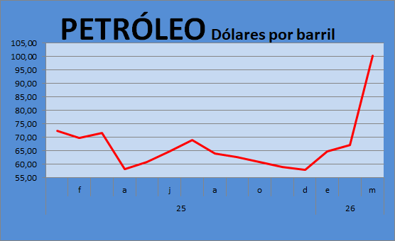 principal es en el precio del petróleo: sube 47% en marzo y 78%
