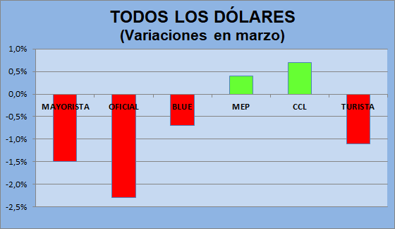 acusaron bajas que fueron del 0,8 al4,6%, con diferencias