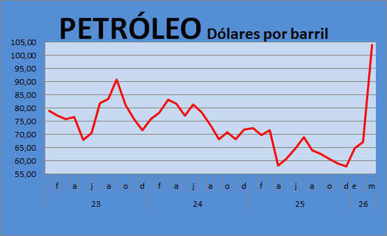 sola cosa: el petróleo. En marzo el barril de crudo pega un tremendo