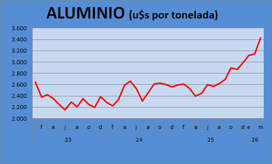 duales, ya que el aluminio (electro intensivo) sube 4%, pero el