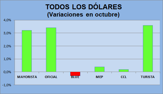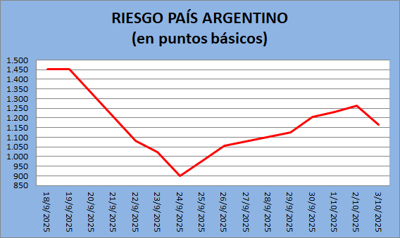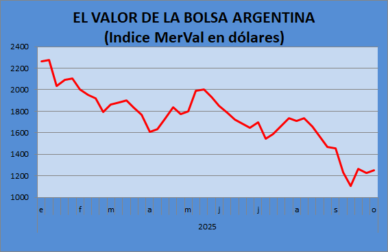LOS DÓLARES OFICIALES NO SE MOVIERON, PERO LOS DÓLARES FINANCIEROS Y EL BLUE ANOTARON RETROCESOS CON EL DÓLAR OFICIAL A 1454,86 PESOS, EL BCRA NO INTERVINO EN EL MERCADO DE CAMBIOS AL FINAL DEL DÍA, EL BCRA LOGRÓ SUMAR RESERVAS POR U$S 467 M, CON VENTAS MENORES DE PARTE DEL TESORO CON MENOS NEGOCIOS, LA BOLSA DE BUENOS AIRES BAJÓ 0,2%, CON ADR ARGENTINAS MIXTAS EN NY DOBLONES DE A OCHO: LOS METALES PRECIOSOS SIGUEN SALTANDO MIENTRAS EL DÓLAR SE DEBILITA EXPECTATIVA PUESTA EN EL VIAJE DE CAPUTO A WASHINGTON MILEI RECIBE A MACRI EN OLIVOS PARA RECOMPONER LA ALIANZA POLÍTICA EL DÓLAR SE DERRITE Y SUBEN EL PETRÓLEO, EL ORO, LA PLATA Y LAS CRIPTOMONEDAS AUTOS FABRICADOS EN SETIEMBRE: 5,8% MÁS QUE EN AGOSTO Y 5% MENOS QUE EN SETIEMBRE DE 2024 AUTOS EXPORTADOS EN SETIEMBRE: 3,6% MÁS QUE EN AGOSTO, PERO 17,2% MENOS QUE EN SETIEMBRE DE 2024
