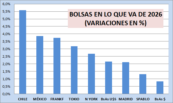 LA BOLSA DE CHILE VUELA Y LA DE BUENOS AIRES ES FURGÓN DE COLA
