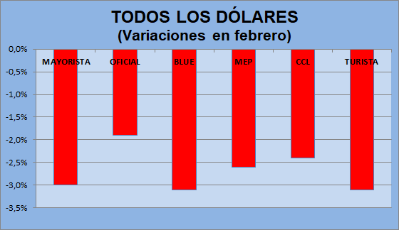 Esta semana bajaron todos los dólares: el blue cedió 0,7%, el