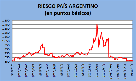 EL RIESGO PAÍS VOLVIÓ A BAJAR Y CASI ROMPE PISO DE HACE UN AÑO