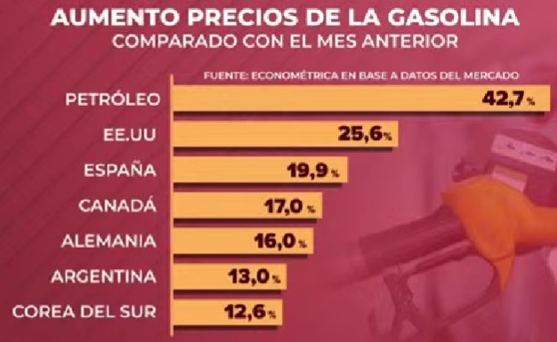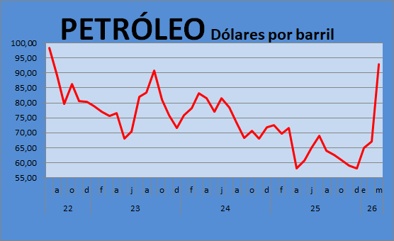 Brent, que estaba en 60 dólares, hoy cotiza a 103 dólares.