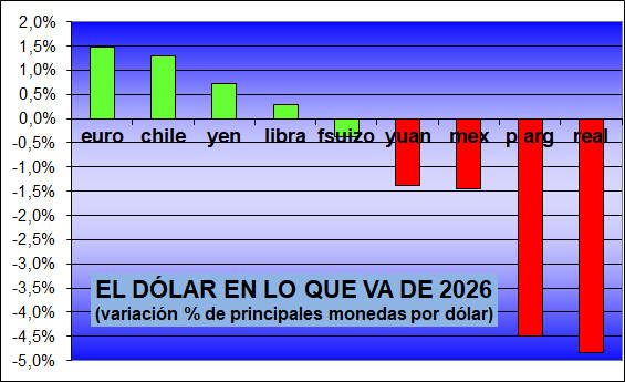 francos suizos, libras, chilenos, yuanes y yenes, el dólar