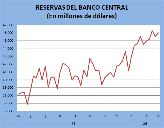 COMPRAN DÓLARES Y RESERVAS BRUTAS SUPERAN LOS U$S 46.000 M