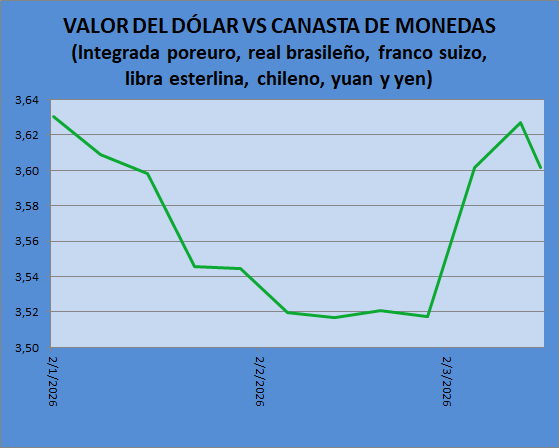 dólar. Medido contra una canasta integrada por euros, reales,