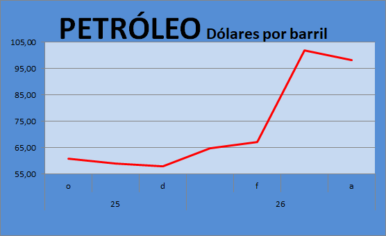 barril de crudo se disparó, con un aumento del 92,3%. Esto está