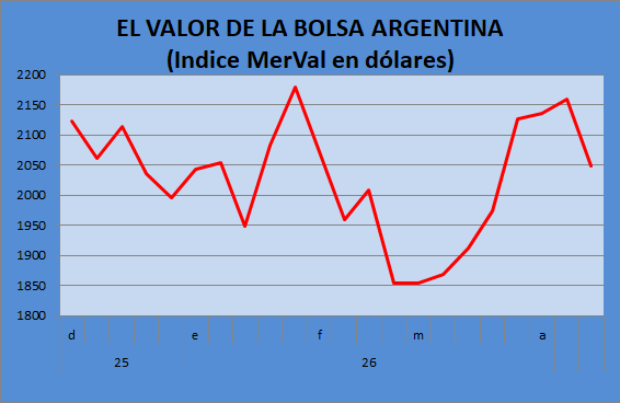 LA EMPETROLADA BOLSA ARGENTINA VUELVE A PERDER VALOR