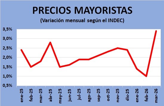 DURA SUBA DEL 3,4% PARA LOS PRECIOS MAYORISTAS EN MARZO