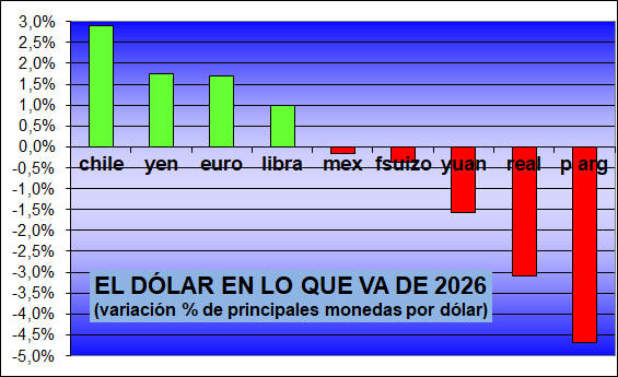 francos suizos, libras, chilenos, yuanes y yenes, el dólar