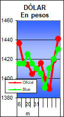 1500), con suba del 2% para el mep y alza del 0,7% para el blue. Los