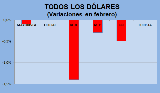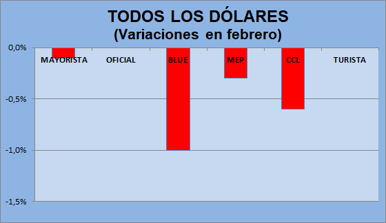 EL DÓLAR LOCAL SIGUE SIN SER TEMA: CONTINÚA FEBRERO EN ROJO