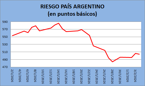 MÍNIMA BAJA PARA EL RIESGO PAÍS, AÚN ARRIBA DE LOS 500 PUNTOS