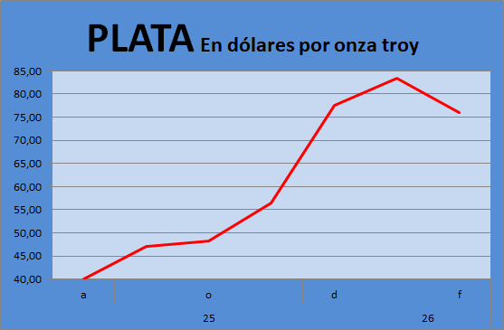 privados. La onza de plata saltó de 17 a 122 dólares, y ahora está a