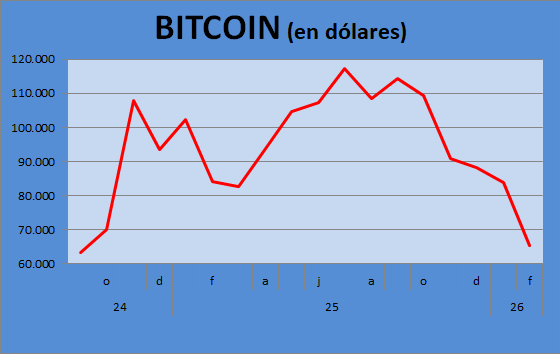 77, con una estocada del 37%. Y el Bitcoin trepó de 17 a 125