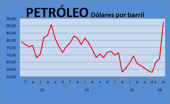 Brent, que estaba en 60 dólares, hoy cotiza a 103 dólares.